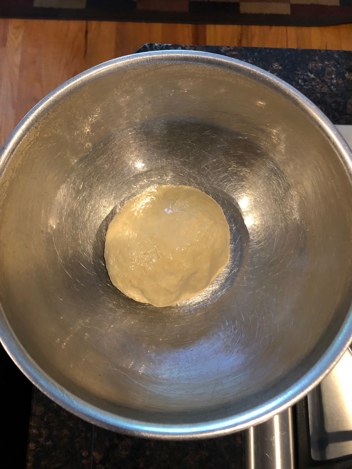 Mix in 1/2 cup warm water, the 1.5 cup flour, salt, 2 tbsp sugar, and vegetable oil. Knead until the dough is smooth. In a greased bowl, let rise until tripled in size (approximately 1.5 hours. If using active dry yeast instead, about 3 hours).